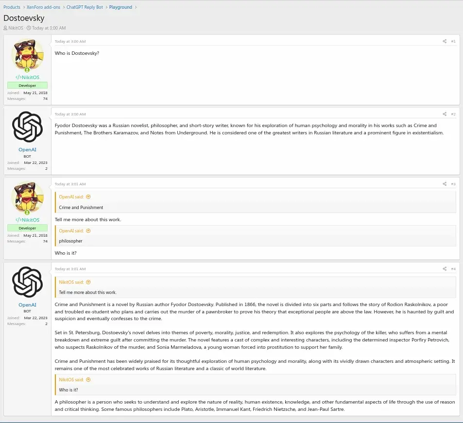 TC - Ответный бот ChatGPT. Автоматический ответный бот на форуме, работающий на базе ChatGPT.