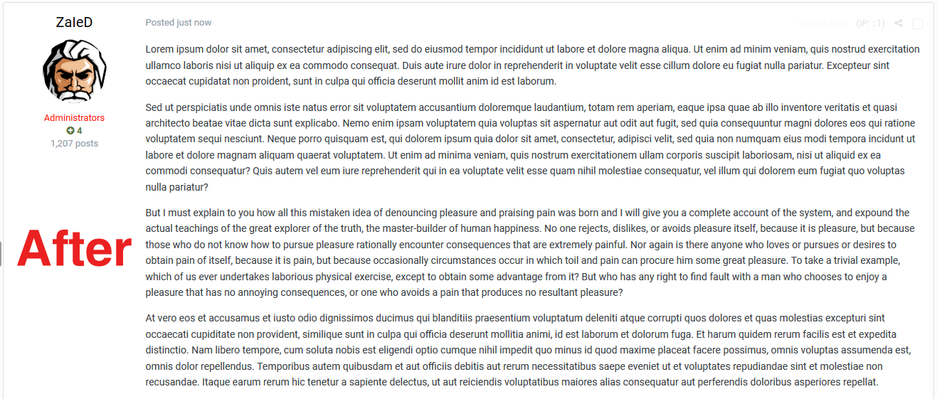 Это очень простой плагин для удаления пустых тегов <p> в сообщениях форумов, записях блогов и страницах загрузок. Он преобразует внешний вид сообщений в компактный вид.