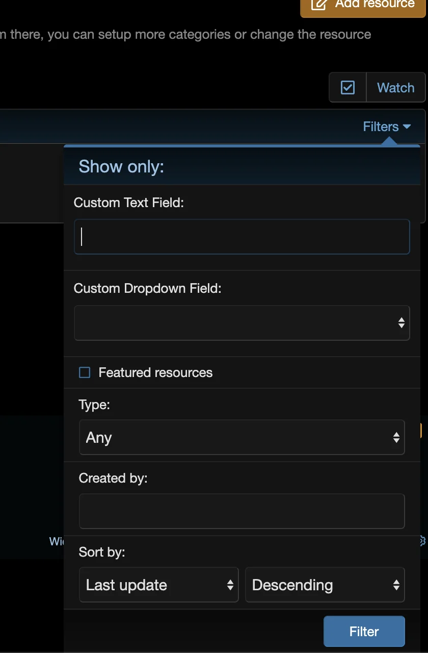 [vbresults.com] Filter Resource Fields - Сделайте ресурсы фильтруемыми по пользовательским полям ресурсов.