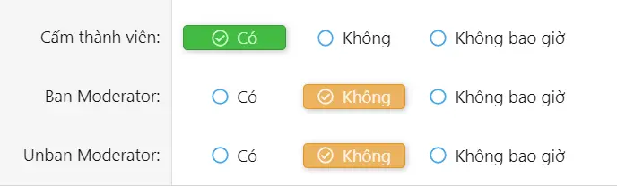 По умолчанию, чтобы заблокировать модератора, администратор должен понизить рейтинг этого участника до обычного, прежде чем его можно будет заблокировать.